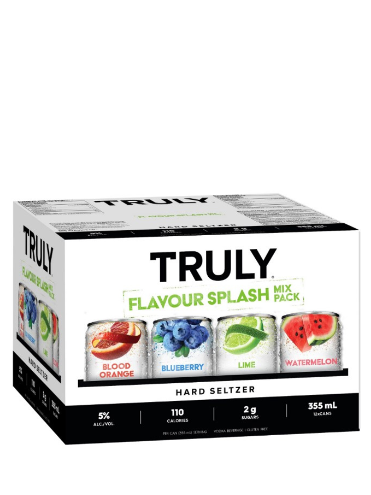 The Truly Flavor Splash Mix 12-pack can refers to a variety pack of Truly Hard Seltzer. Truly Hard Seltzer is a popular brand of alcoholic seltzer water known for its low calorie and low sugar content. The Flavor Splash Mix pack typically contains a selection of Truly flavors, which can include options like Wild Berry, Blueberry & Acai, Raspberry Lime, and Watermelon & Kiwi, among others. These packs offer a convenient way to enjoy a variety of flavors of hard seltzer in a single purchase
