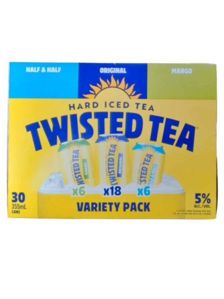 Spirit based beverage that is flavoured with select teas and natural flavours. A party pack of all your favourite Twisted Tea flavours. Contains Peach, Original, Half & Half, and Raspberry