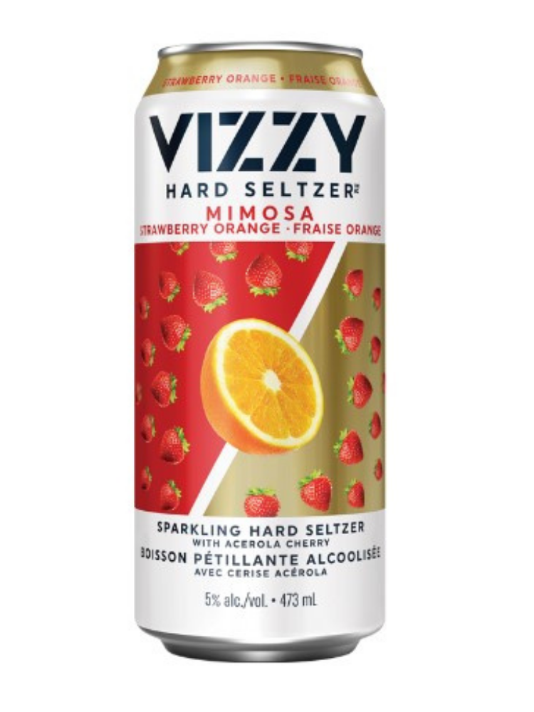 Introducing Vizzy Mimosa, Strawberry Orange. A refreshing hard seltzer crafted with a bold dual flavour offering and real Orange Juice.