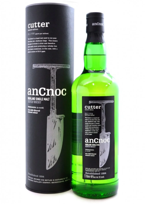 Peated anCnoc from Knockdhu Distillery in the Highlands. Named after the Cutter , which is “a hand tool used to cut peat from less wet, shallower bogs.”