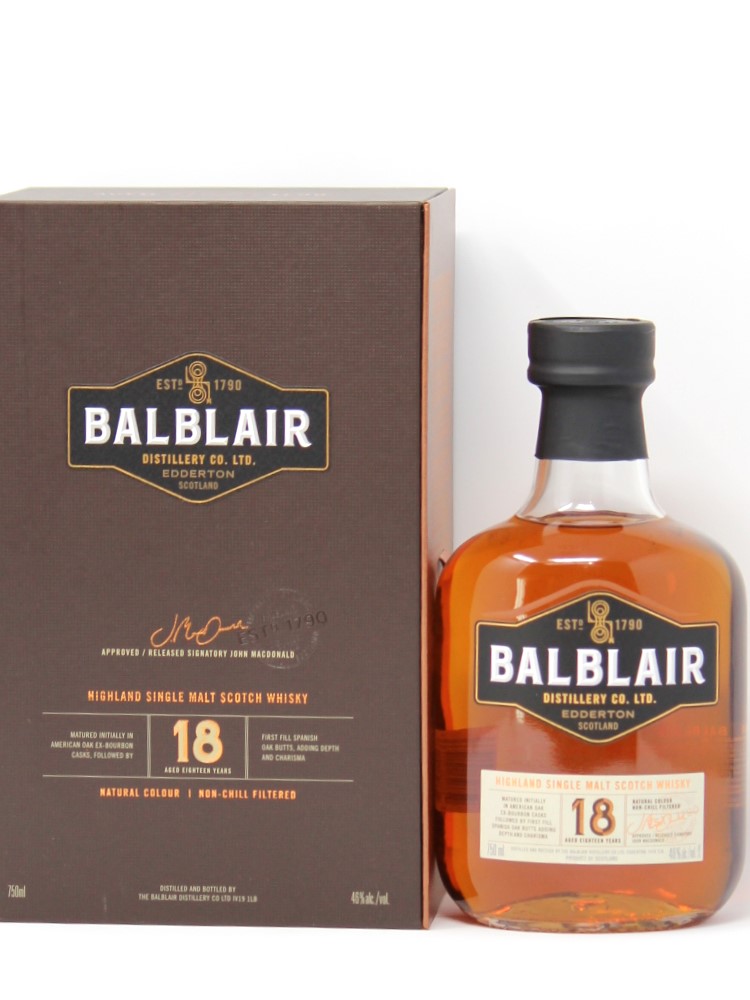 Balblair 18 Year Old is the third whisky in the Balblair Collection and has been matured in ex-bourbon casks before being finished in first-fill Spanish oak butts. The result is a charismatic single malt with a rich toffee and pear aroma, with a hint of warm spices and leather. The palate offers notes of ripe apricots and raisins balanced by toasted oak and vanilla custard, before a long, warming finish filled with hints of cinnamon and nutmeg.